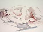 200420040419 Ongekleed model vrouw met aquarel en kleurpotlood